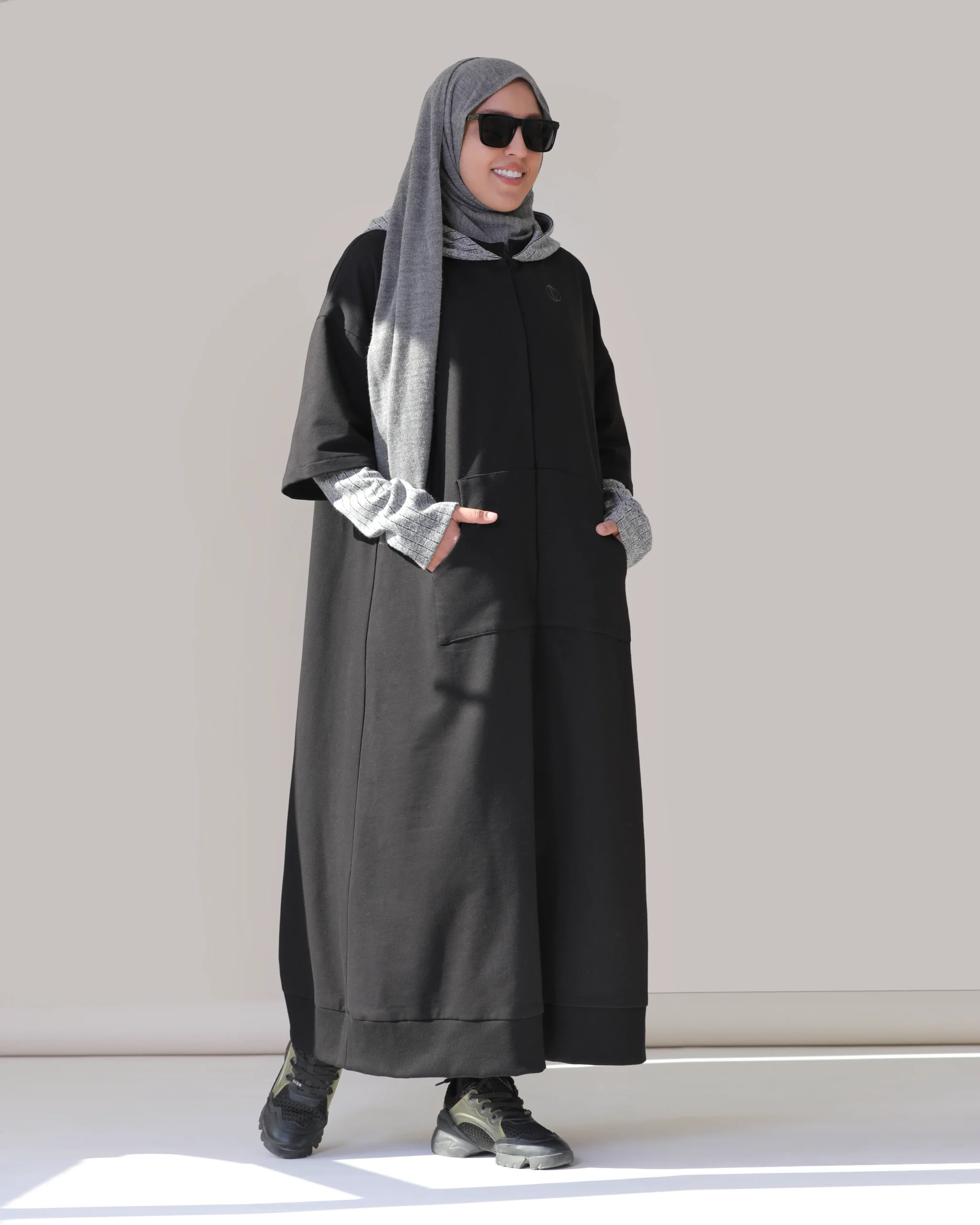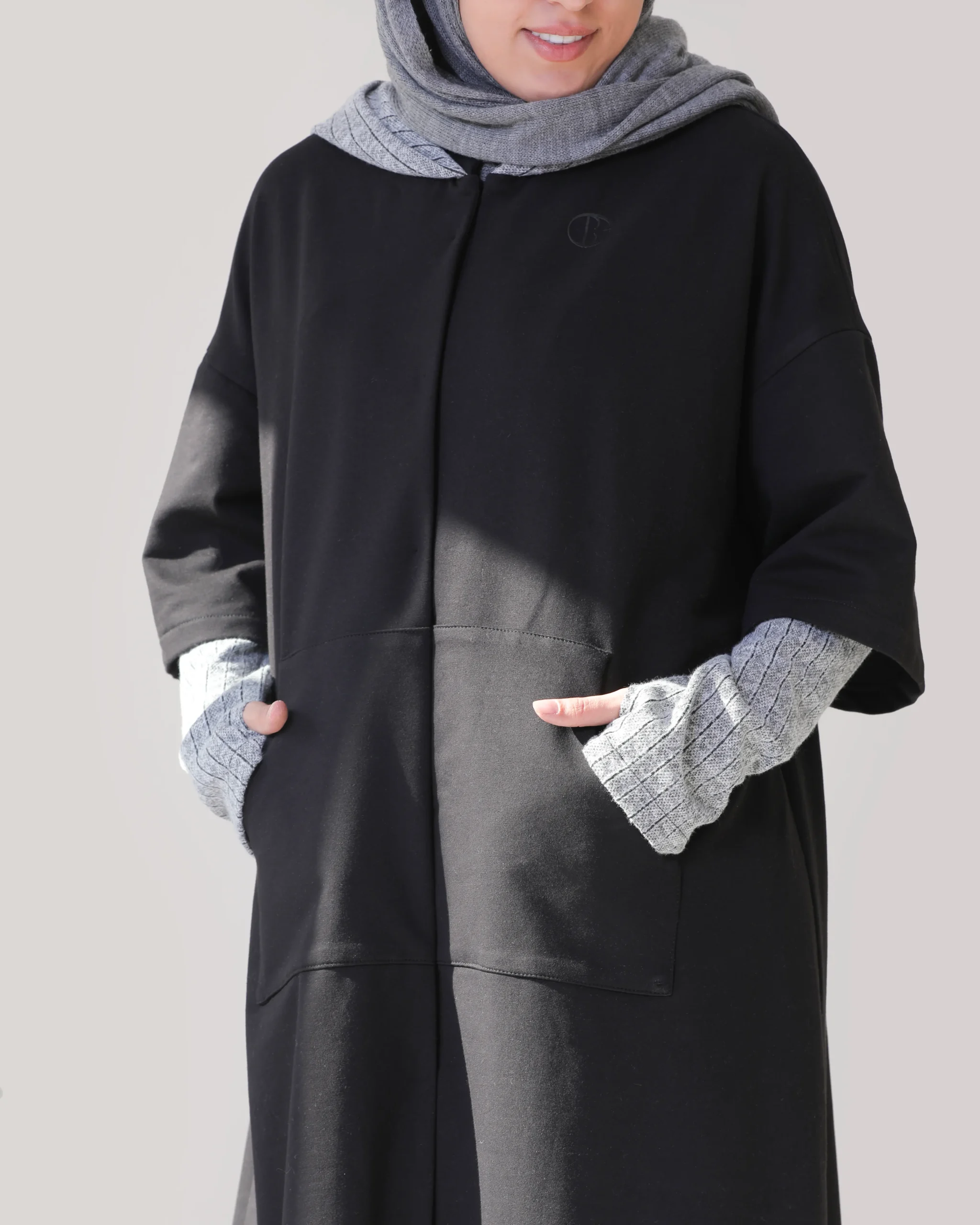 رنگ: مشکی با آستین و کلاه طوسی